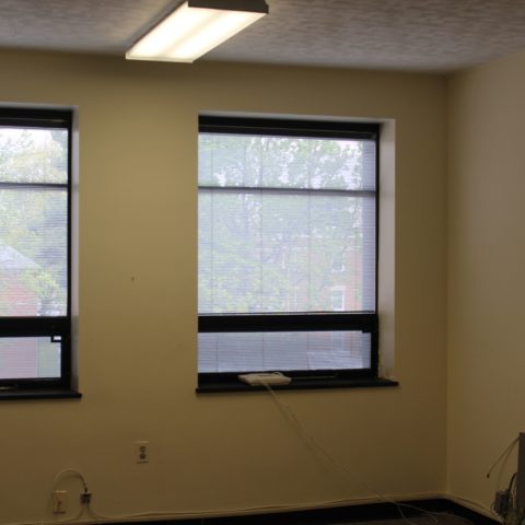 - 474 square feet, three work spaces including one private office and room with cabinets